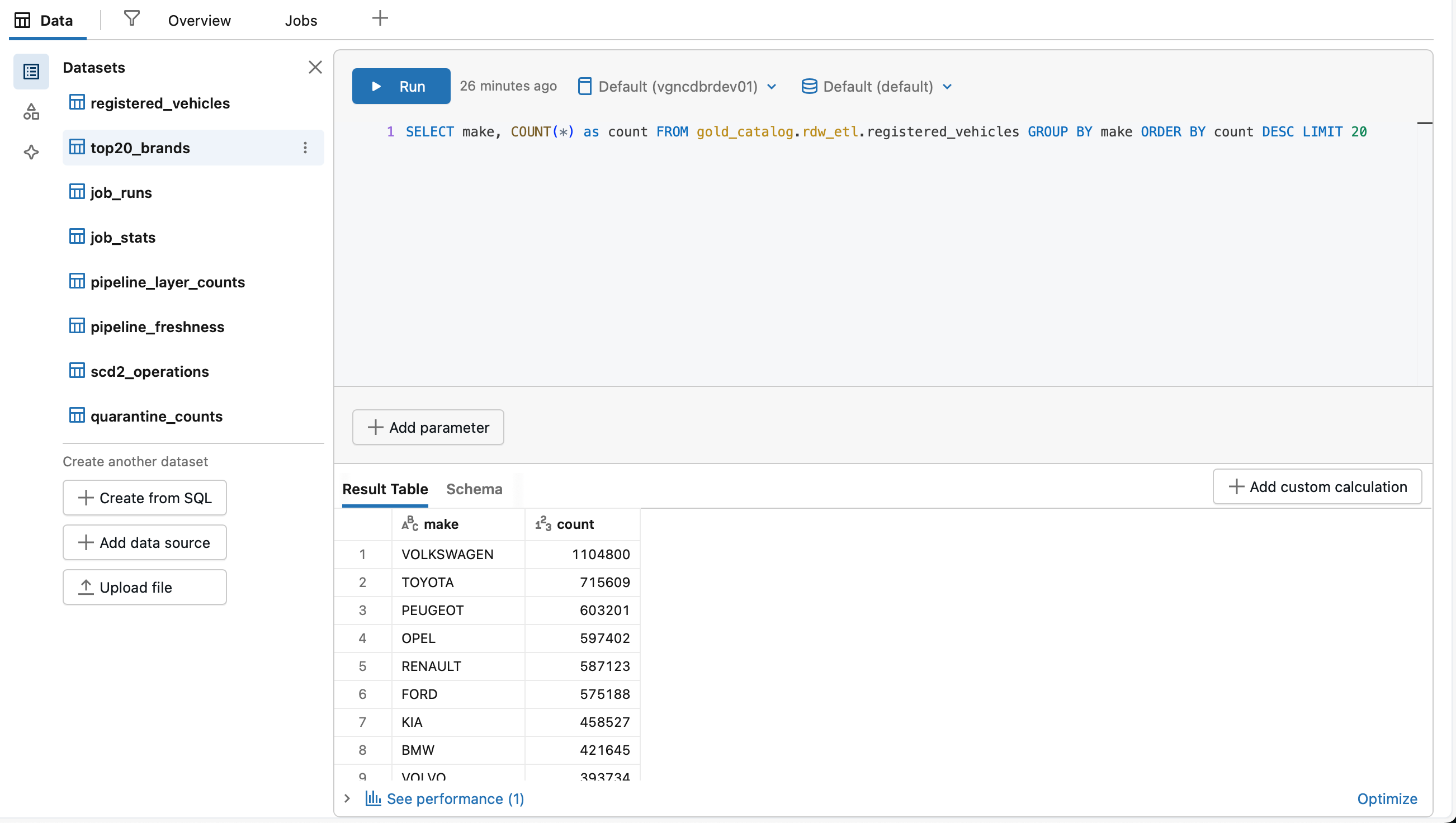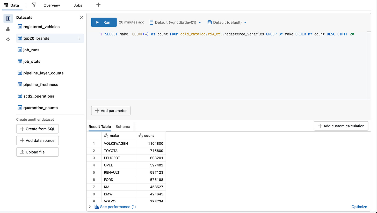 “query”: “SELECT COUNT(*) as total FROM gold_layer.rdw_etl.registered_vehicles”