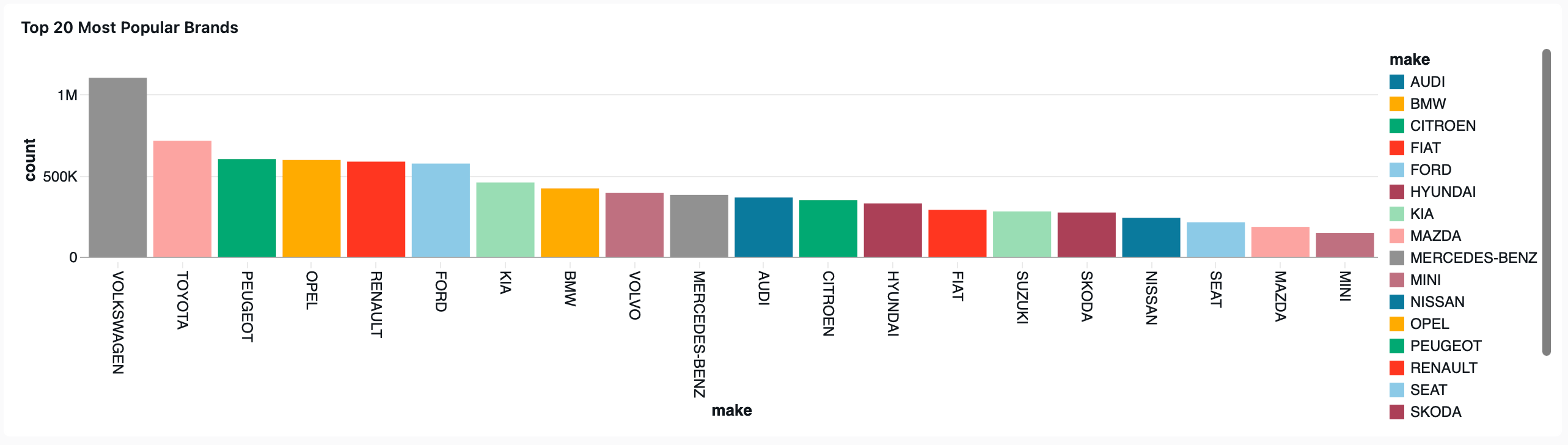 The results below show what we were able to achieve in only around 30-60 minutes of dashboard work using Claude code in combinations with the raw JSON source file for the dashboard. The initial experiment for most popular brands widget is shown below: