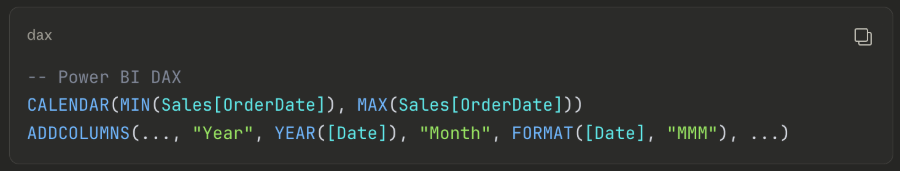 CALENDAR+ADDCOLUMNS) as a SQL view?Can the migration produce working visuals (cards, line charts, tables)?