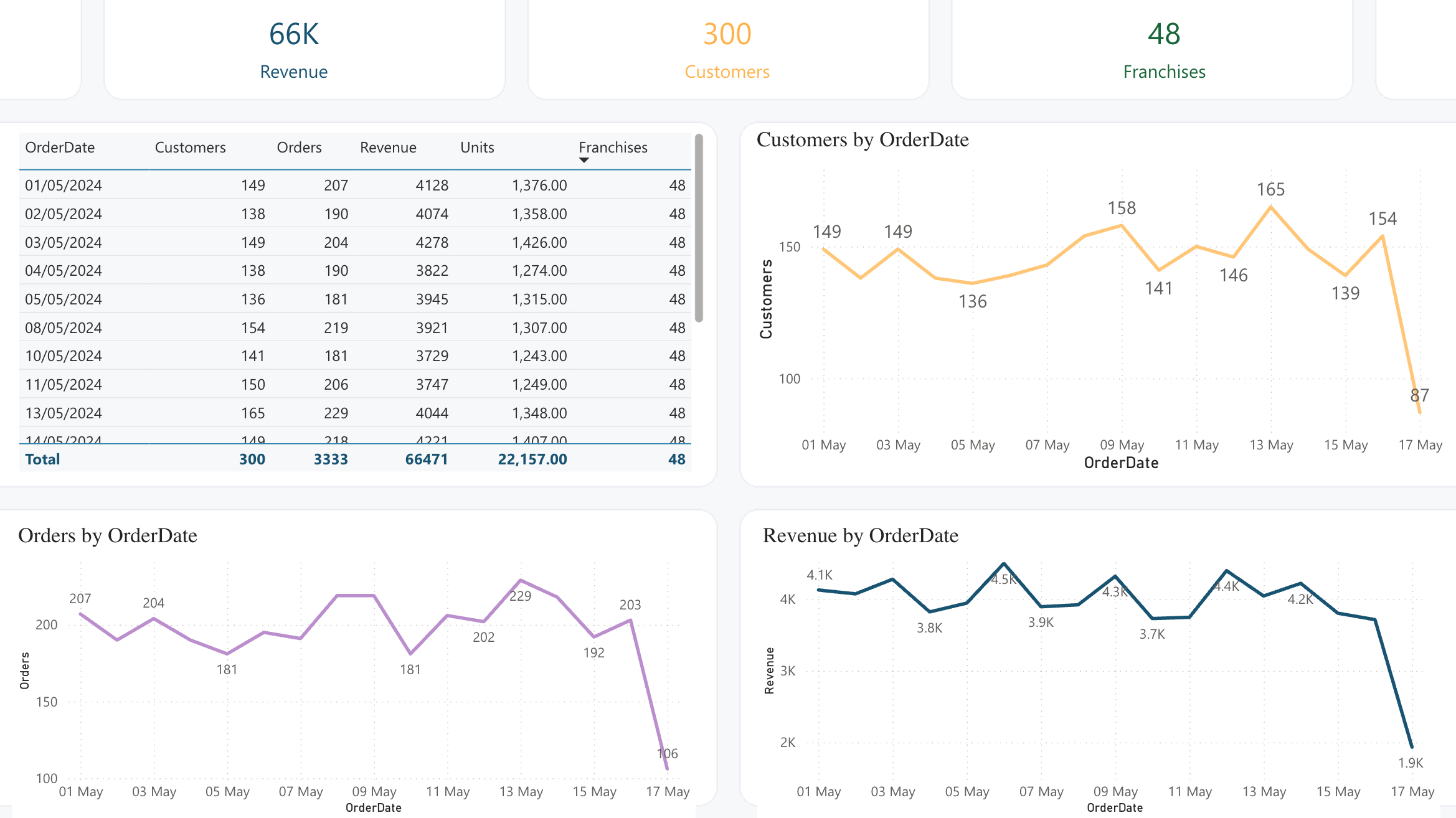 Single dataset: recognised that all charts use the same table with no