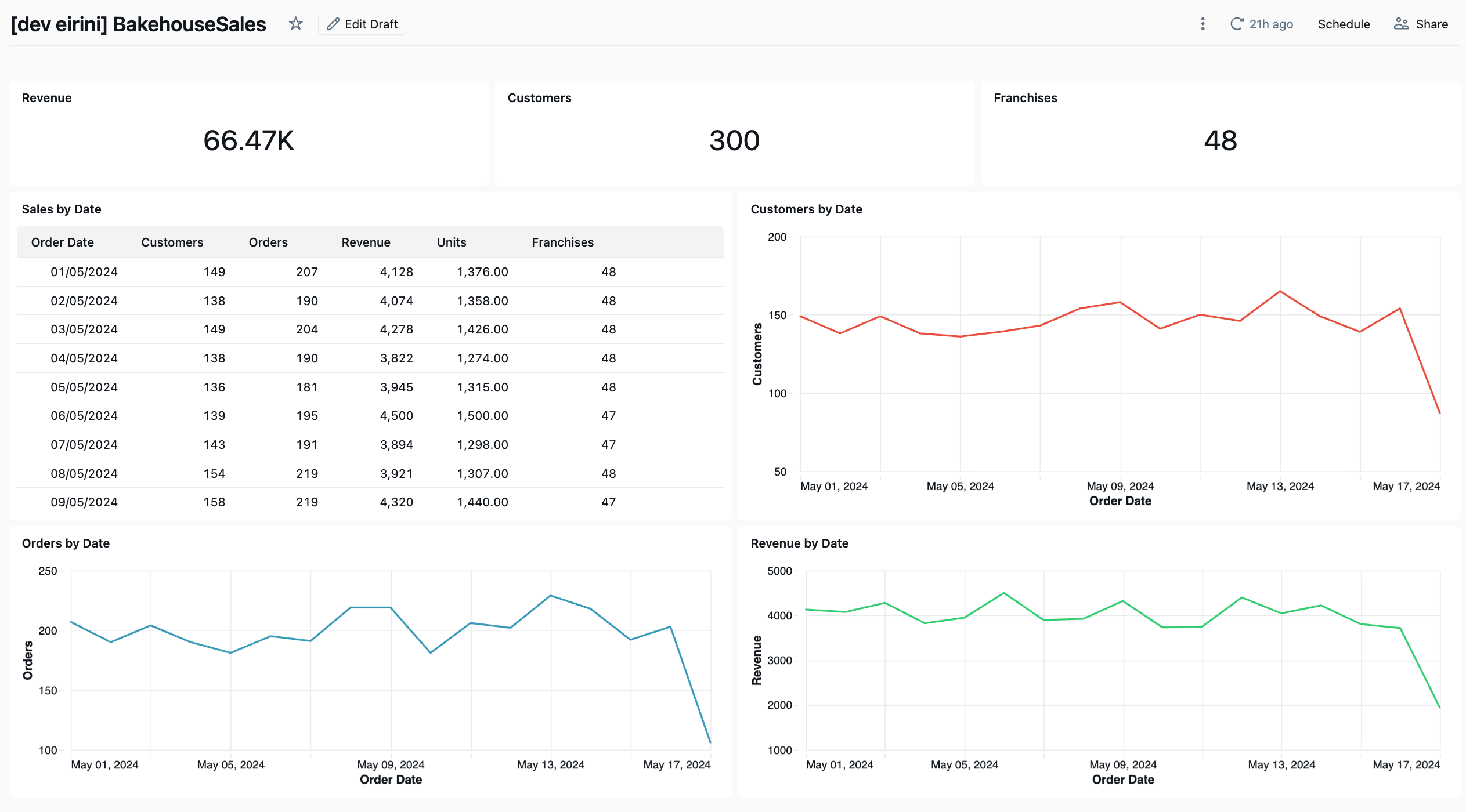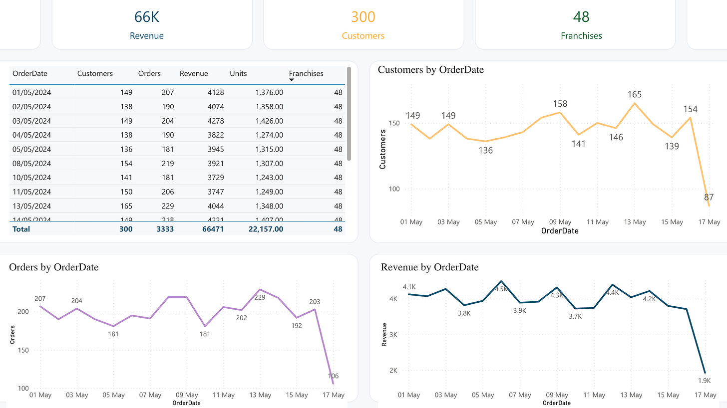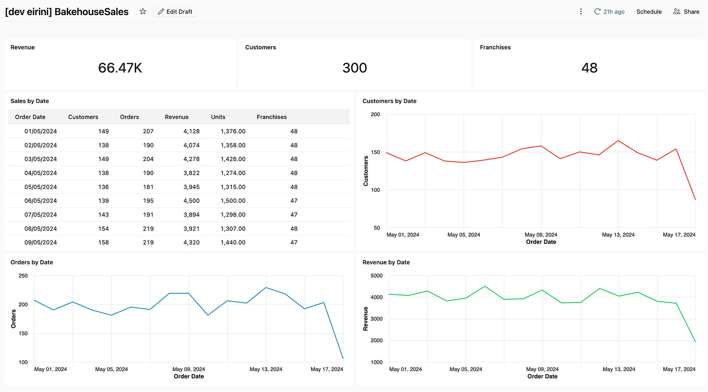The BakehouseSales dashboard was intentionally simple but not trivial. It tested: